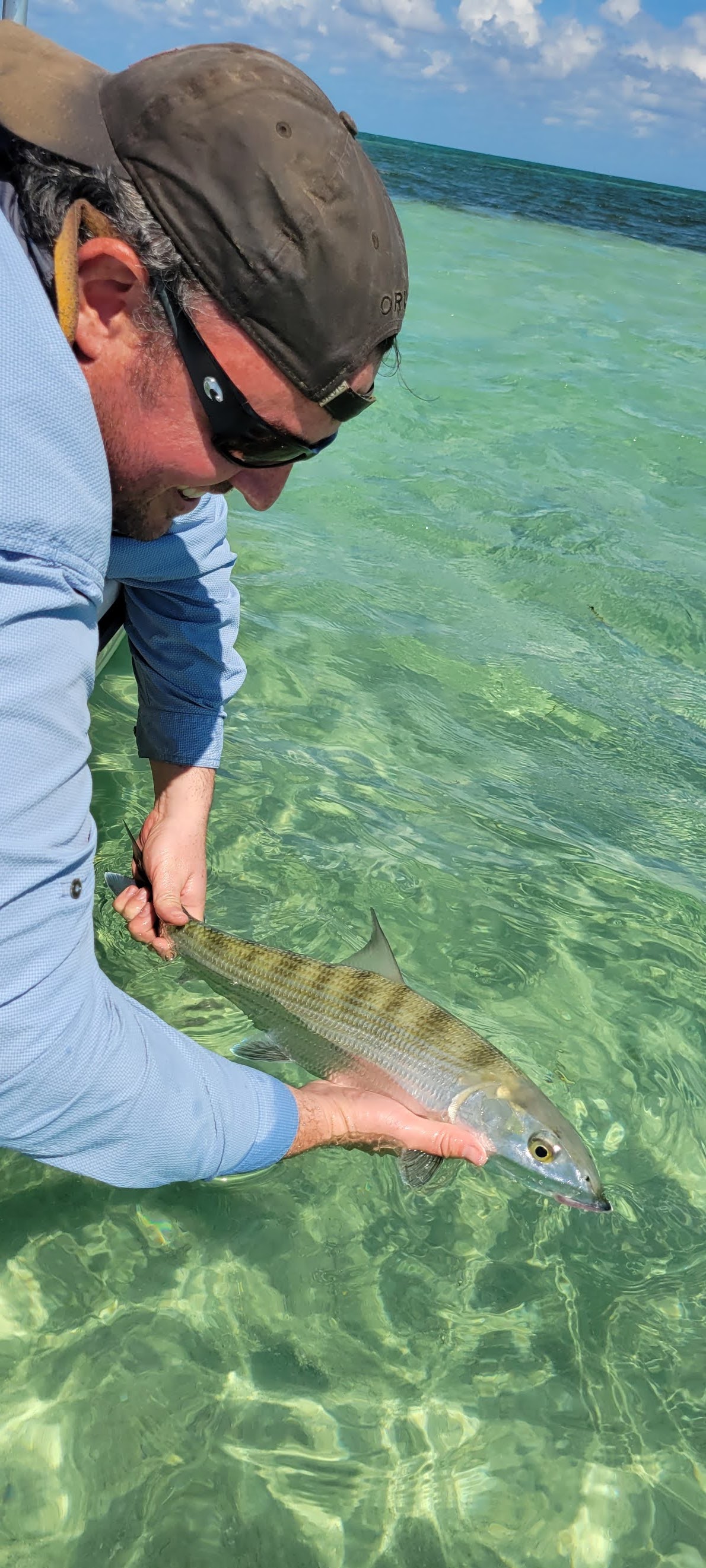 Mike is from Maryland and fly fishes with me for three days several times a year. We always have a good time and mix it up on fly. The first day we had very unusual conditions for March, a super calm windless morning. We took the opportunity and fished for bonefish out of Homestead and it was awesome! The problem is we missed a few eats on fly but we changed it up and ended the day fishing a mullet mud where Mike had a blast catching bluefish, jacks, and more as well as having a black tip shark eat his bluefish next to the boat. The second day was like the first except the bonefishing was even better and Mike got 8 eats and finally connected on the last one. What a rush! Afterwards we fished the mullet muds again and called it a day. On the last day the wind had picked up so we fished out of Key Biscayne and the fishing was good but the fish were reluctant to eat a fly. I really wanted Mike to get a snook on fly but the conditions were tough and the wind was coming at a bad angle. He did ask that I throw a lure to make sure they were there and I hooke duop immediately. Sorry Mike! We called it a day early because of the unusually high boat traffic running over most of the fishing spots.